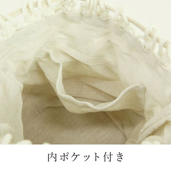 コロンと可愛い巾着バッグ♪異素材の組み合わせがナチュラル可愛い雰囲気に。
