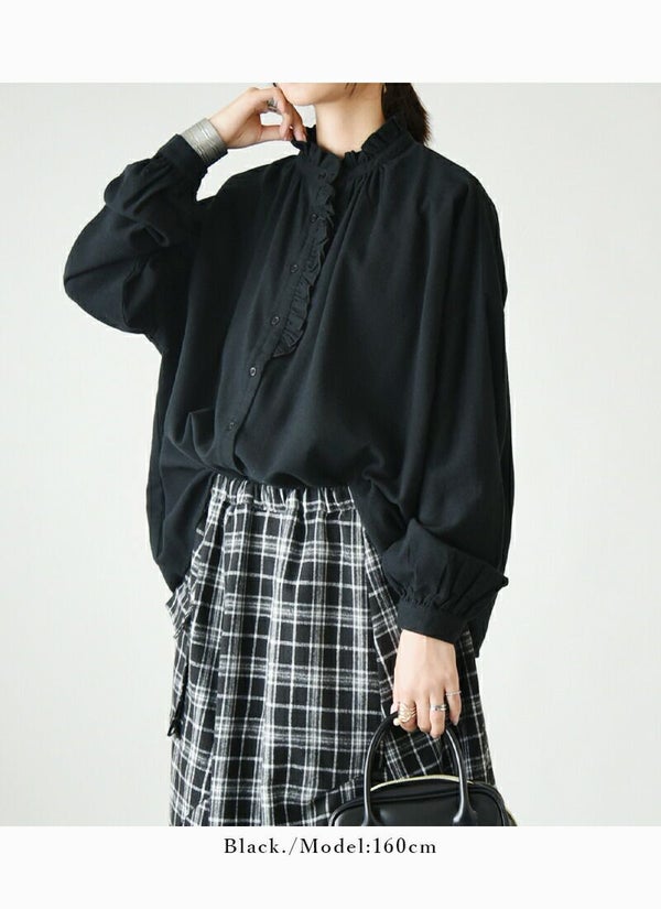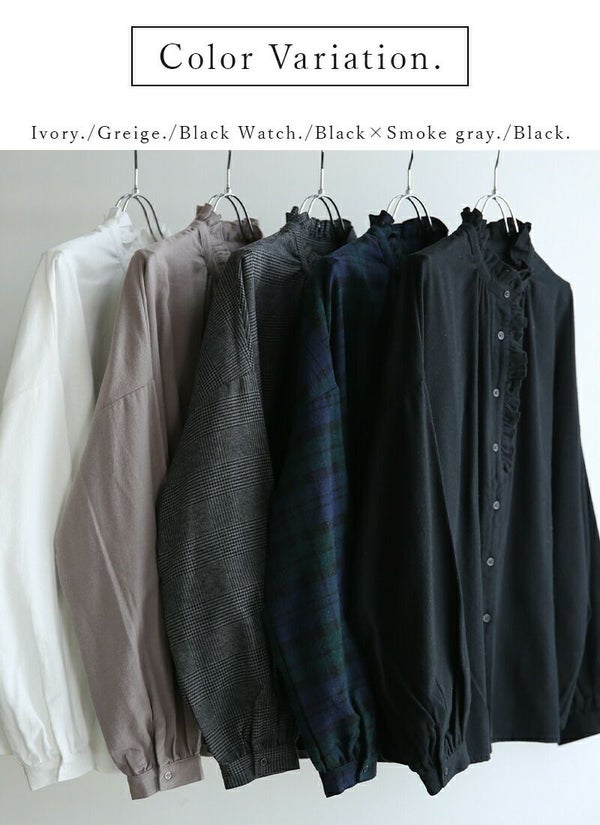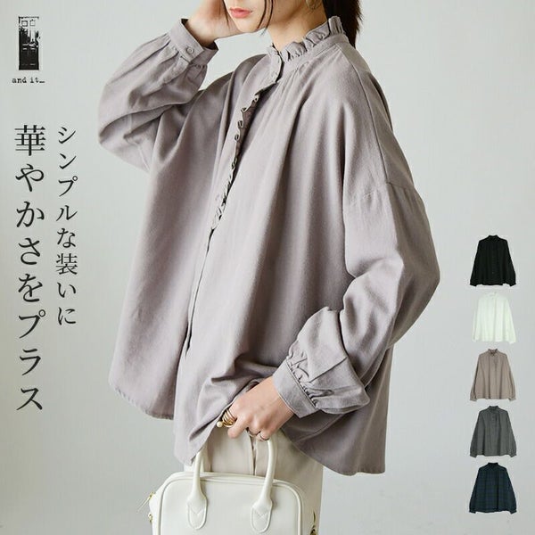 ブラウス レディース ネル ネル生地 ネル素材 フリル ワイド ワイドシルエット トップス 長袖 起毛 ほっこり ふんわり 大人可愛い ナチュラル カジュアル ドロップショルダー ゆったり 楽ちん ラフ 体型カバー アイボリー グレージュ ブラック チェック 黒 白 秋 冬 24aw AW, M-L M L andit_ and it_ andit ANDIT_ ANDIT あんどいっと アンドイット NEW カジュアル ナチュラル きれいめ 大人可愛い 大人女子 お洒落 おしゃれ トレンド シンプル ニュアンス ゆったり 楽ちん ラフ 体型カバー ぽっちゃり プチプラ ファッション レディースファッション ママ服 20 30 40 50 20代 30代 40代 50代