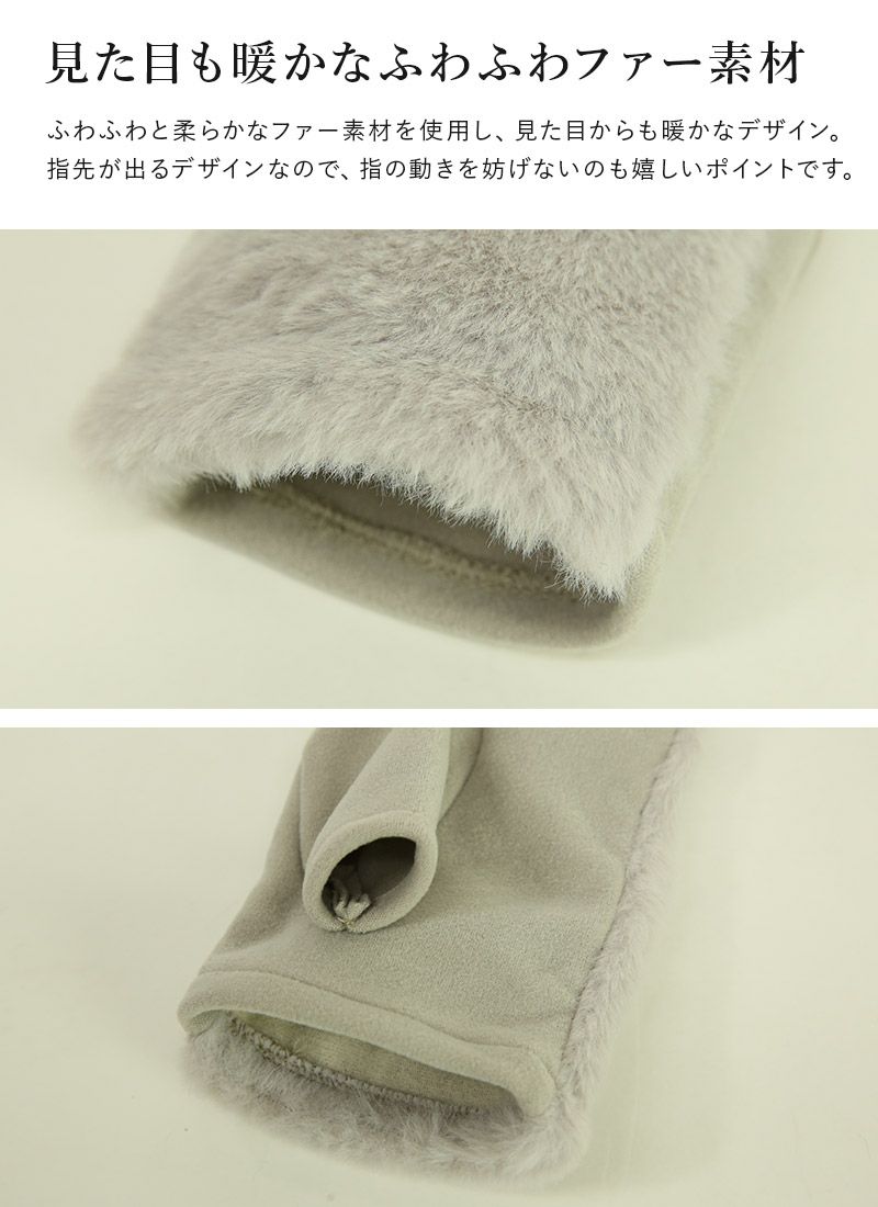 ボリュームのあるファーが大人っぽいハンドウォーマーが登場!リブ×ファーの組み合わせが可愛く、存在感のあるデザイン。指先が出るので、スマホやパソコン等の作業時にも使いやすい仕様です◎ふわふわと柔らかなファー素材が見た目も暖かで、防寒しながらコーデのアクセントにもなります♪
