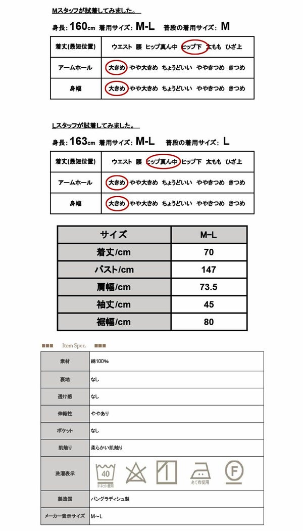 ・綿100%生地の商品は、洗濯時に多少縮む場合がございます。