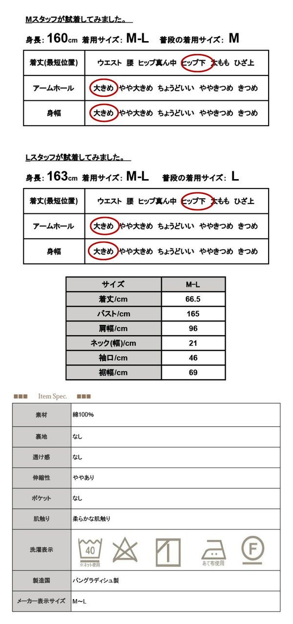 ・綿100%生地の商品は、洗濯時に多少縮む場合がございます。