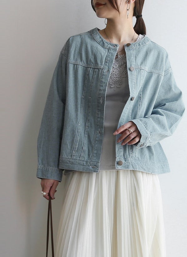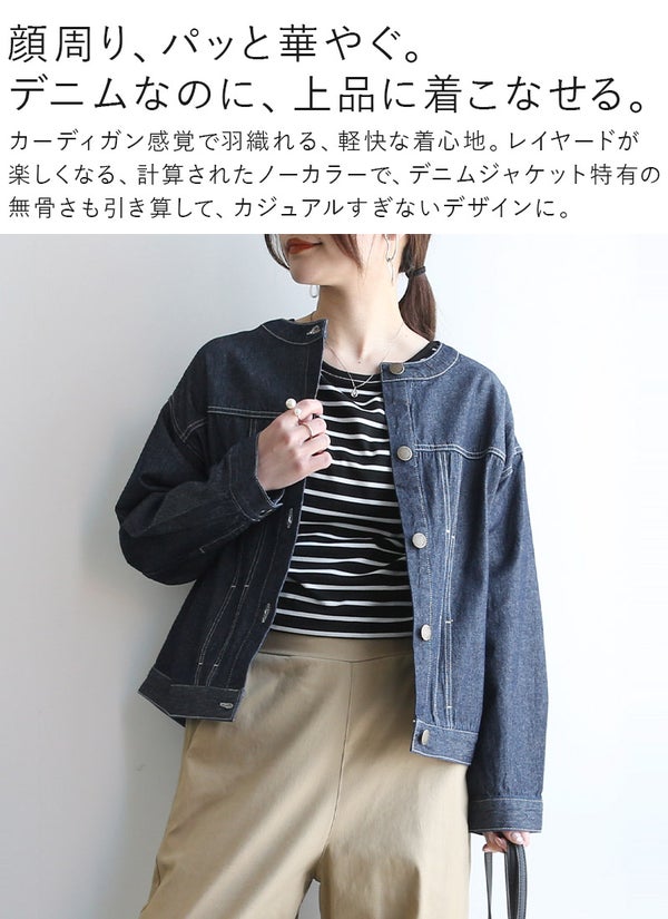 ジャケット レディース コットンデニムノーカラージャケット アウター ライトアウター 長袖 コットン 綿100% コットンデニム 羽織り 重ね着 レイヤード 大人可愛い シンプル カジュアル ワイド ゆったり 楽ちん ラフ スカイブルー ダークネイビー 新作 NEW ニュー カジュアル かじゅある ナチュラル なちゅらる 女性 綺麗 綺麗目 綺麗め きれいめ キレイメ キレイめ きれい キレイ 可愛い かわいい カワイイ カッコいい かっこいい 格好良い カッコイイ 大人 オトナ おとな オトナカワイイ おとなかわいい 大人可愛い 大人女子 おとなじょし オトナジョシ お洒落 おしゃれ オシャレ トレンド 旬 とれんど 流行 こなれ感 こなれ 高見え 上質 上品 シンプル ニュアンス ラクチン らくちん 楽ちん 楽 動きやすい ゆったり ゆる ゆったりサイズ ゆるカジ ゆるい ゆるファッション 体型カバー プラスサイズ 大きいサイズ ビッグ ビック big ビックシルエット ビッグシルエット ビックサイズ ビッグサイズ オーバーサイズ オーバー フリーサイズ フリー S M L LL 2L XL 3L XXL LLL 着痩せ 着回し 華奢見せ 華奢見え ベーシック プチプラ ファッション レディースファッション レディファ カジュアルコーデ 大人コーデ オトナコーデ 大人カジュアルコーデ きれいめコーデ きれいめカジュアルコーデ オフィスカジュアルコーデ オフィスカジュアル オフィス テレワーク リモートワーク リモート オンライン飲み会 飲み会 打ち上げ ご飯会 ランチ おうち時間 お家時間 デート お出かけ フェス リゾート ビーチ 海 旅行 飛行機 パーティー パーティ 韓国ファッション 韓国コーデ 韓国風 韓国 母の日 母のひ プレゼント ギフト 贈り物 クリスマス 誕生日 春 夏 秋 冬 春夏 秋冬 andit_ and it_ andit ANDIT_ ANDIT あんどいっと アンドイット 20 30 40 50 60 20代 30代 40代 50代 60代