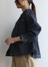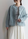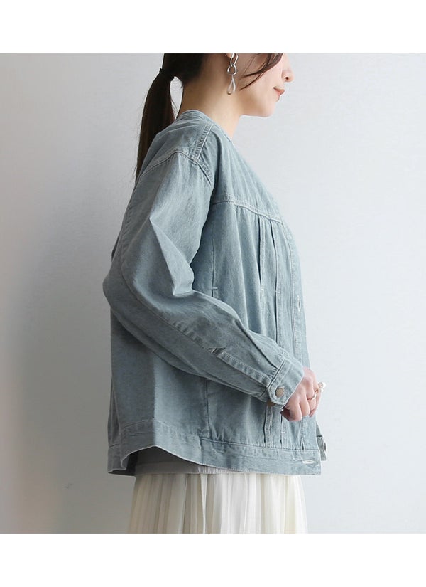 コットンデニムノーカラージャケット M-L