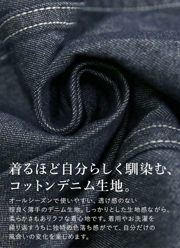 軽やかに羽織れて季節の変わり目にちょうどいい一着。コットンデニムのやさしい風合いが日常にこなれ感をプラス。