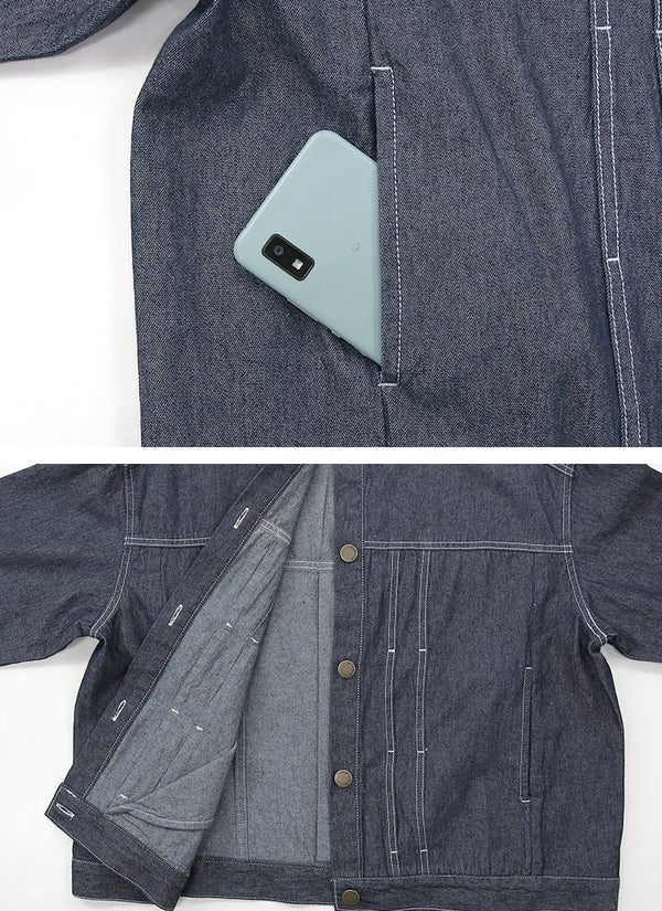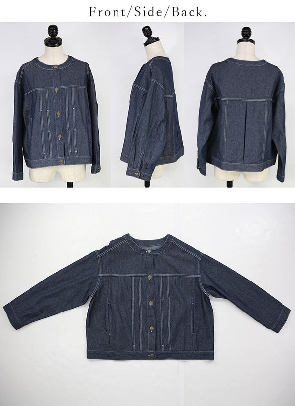 5. コットンデニムノーカラージャケット M-L 【メール便対応可】