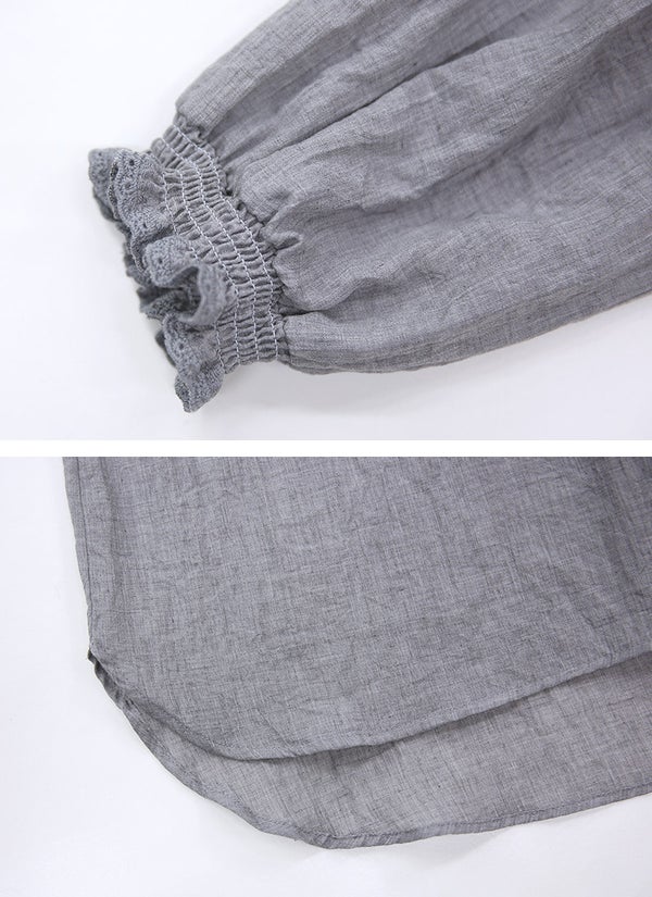 ナチュラルなシワ感が雰囲気漂う。襟と袖口のさりげないレースが大人可愛いブラウス。