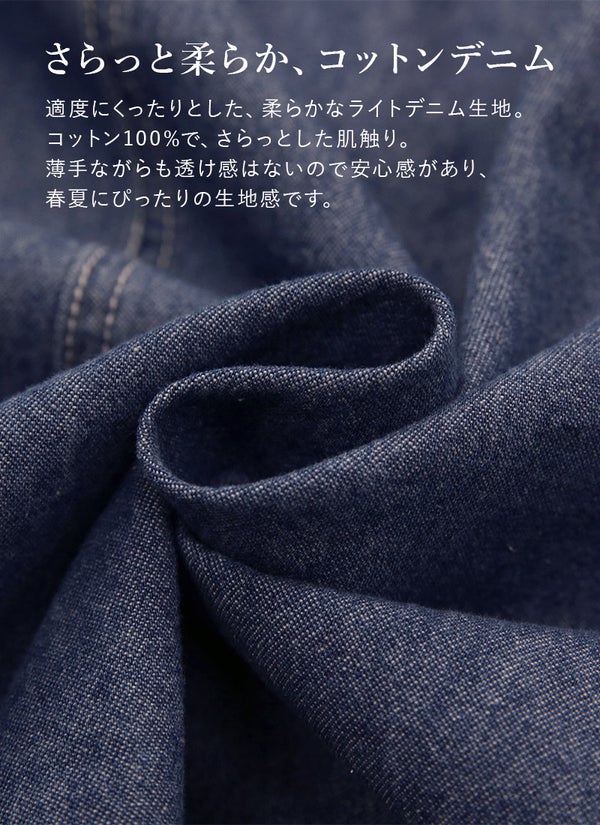 ジャケット レディース コットンデニムジャケット 長袖 長そで 羽織り はおり ライトデニム 綿100% コットン スリット ポケット 重ね着 レイヤード カジュアル 大人可愛い ナチュラル ワイド オーバーサイズ 楽ちん ラフ 春 夏 ブルー ダークネイビー M-L