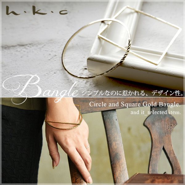 【受注発注】サークル&スクエアゴールドバングル 【メール便対応可】