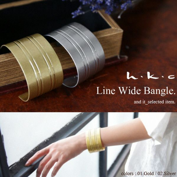 幅が約4cmの大ぶりバングル。手元で抜群の存在感を放ち、着けるだけでぐっとお洒落な印象に。ラインの入ったシンプルなデザインで合わせやすく、コーディネートのアクセントにぴったり。使い込むほどに自分だけの風合い感が楽しめる真鍮素材を使用しています。カラーはゴールドとシルバーの2色。女性だけでなく、男性にもオススメのアイテムです。