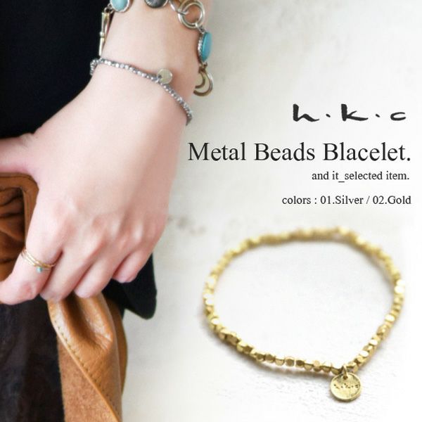 アンティーク感漂うシンプルブレスレット。ゴム仕様で着脱しやすく、フリーサイズで男女問わずお使いいただけます。女性なら足首に着けてアンクレットにしても可愛い2wayデザインです。約2mmサイズの小ぶりなビーズは角のとれた表情豊かな独特の形が特徴。アンティーク感のある色味で大人っぽい雰囲気に仕上がっています。h.k.cのロゴが入ったチャームがワンポイント。単品使いも、手持ちのブレスレットとの重ね着けもおすすめです。