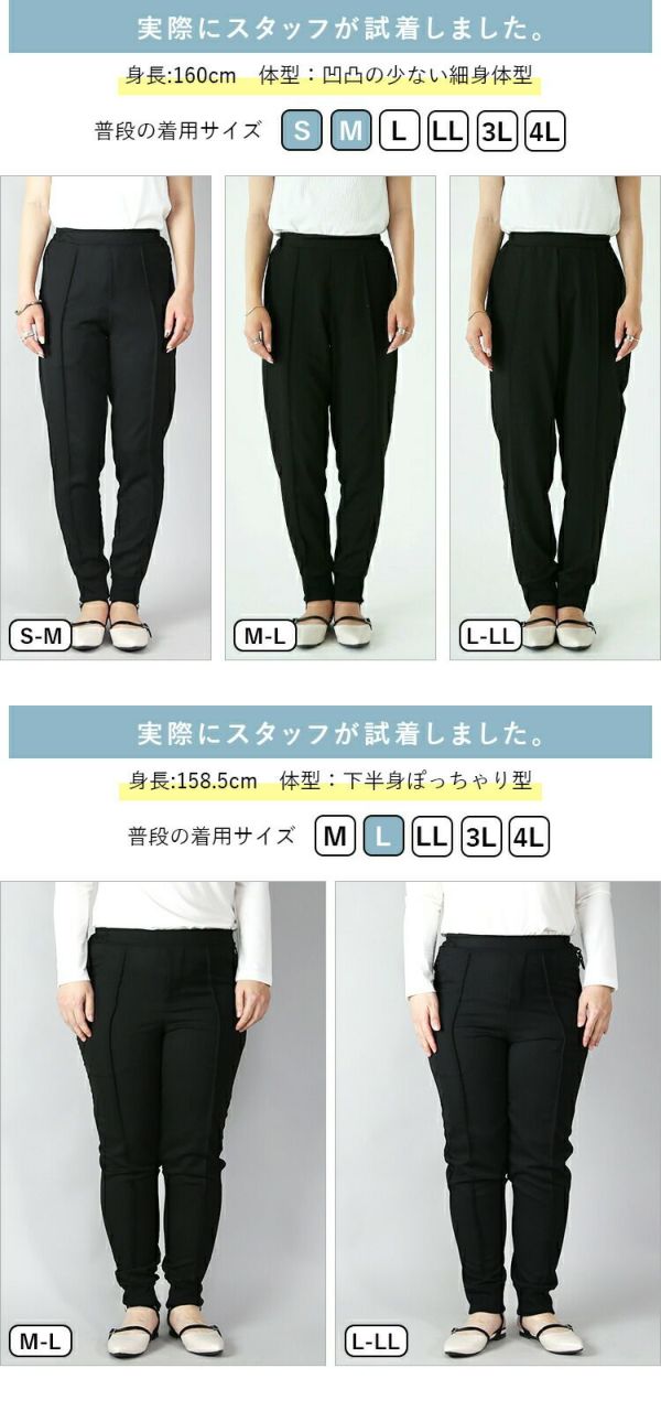 「S-M」と「M-L」と「L-LL」の3サイズから選べます!※レギュラー丈を着用しています