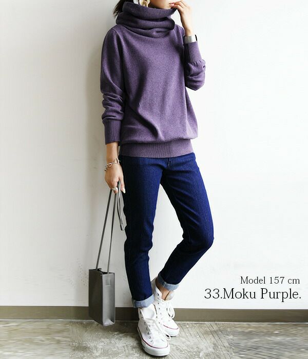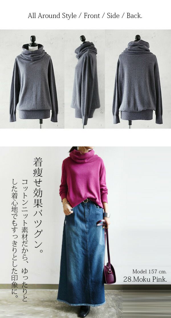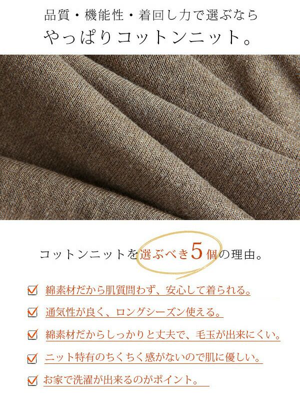 - ふかくしゅネックコットンニット S-M L-LL 3L-4L 【メール便対応不可】