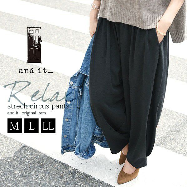 - リラックスストレッチボリュームパンツ M L LL 【メール便対応不可】
