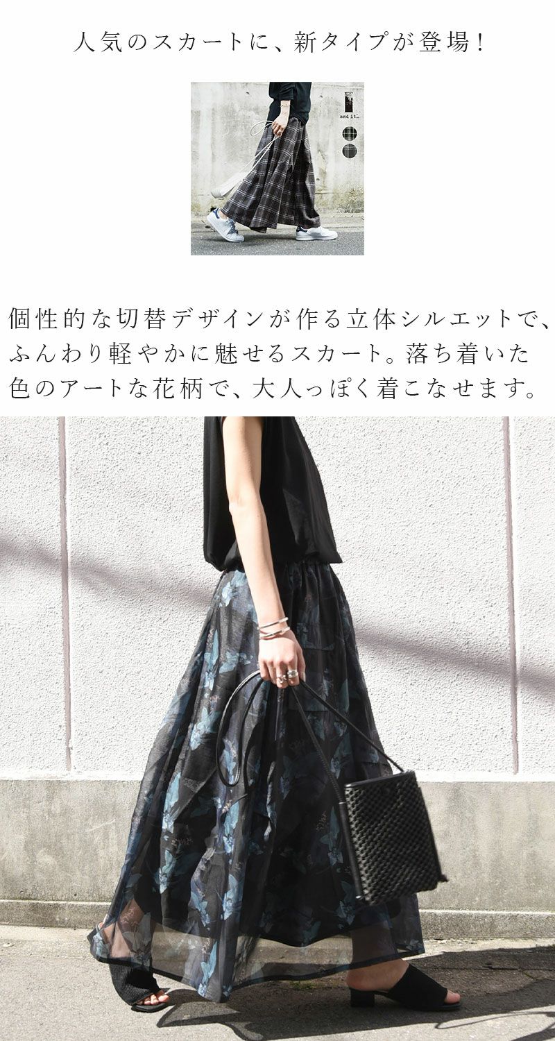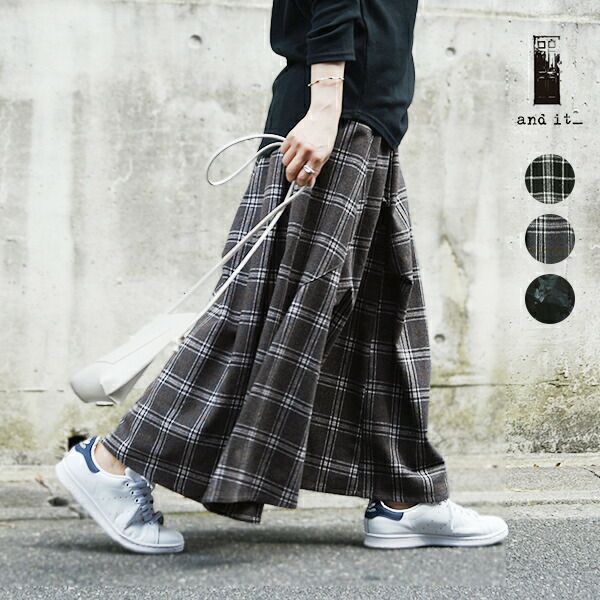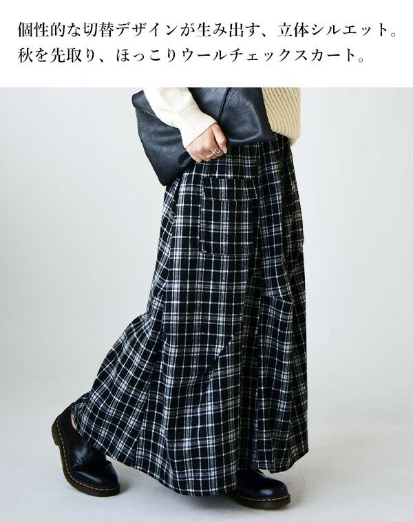 スカート ロング レディース 秋冬 起毛 チェック ボトムス 立体 ネルチェック ネル素材 切替 タック ボリューム お洒落 ウエストゴム ブラック 黒 グレー チェック柄 ウール ウール混 あったか あったかい 秋服 冬服 個性的 フレア フレアスカート andit_ and it_ andit ANDIT_ ANDIT あんどいっと アンドイット AW 再販 再入荷 NEW カジュアル ナチュラル きれいめ 大人可愛い 大人女子 お洒落 トレンド シンプル ニュアンス F Fサイズ フリー フリーサイズ ゆったり 楽ちん ラフ 体型カバー ぽっちゃり プチプラ ファッション レディースファッション ママ服 20 30 40 50 20代 30代 40代 50代
