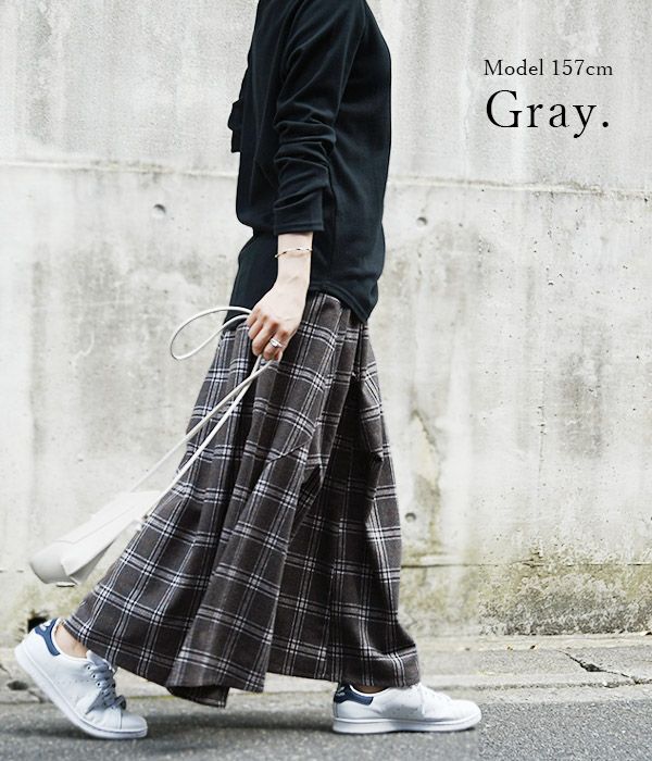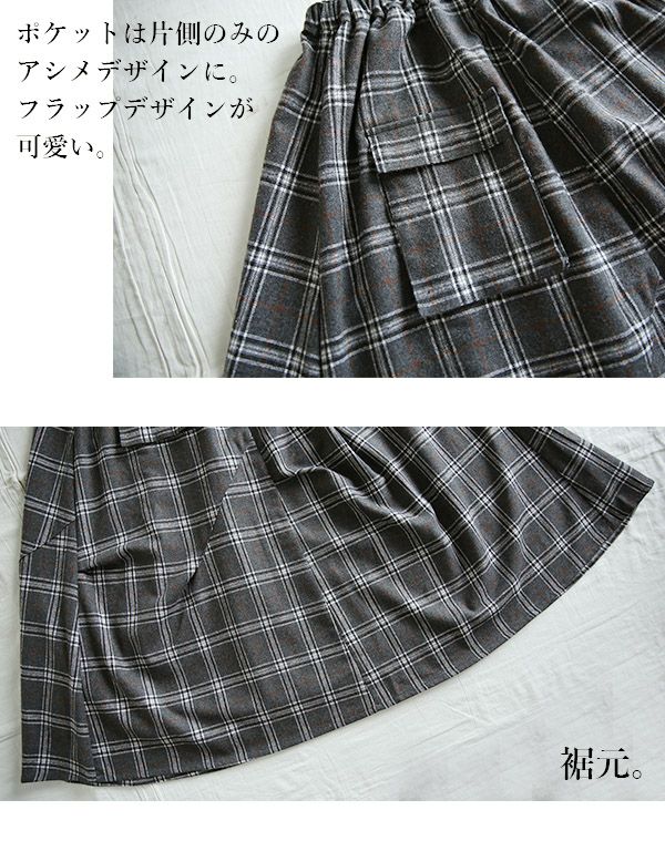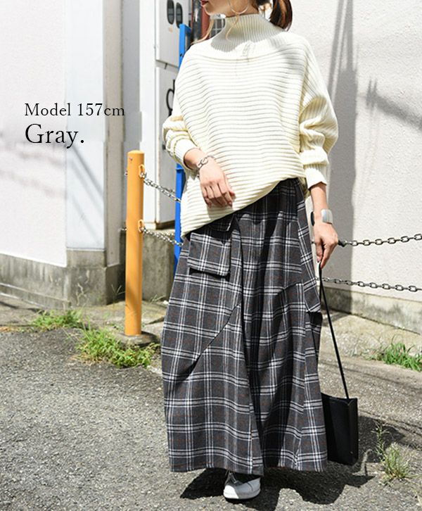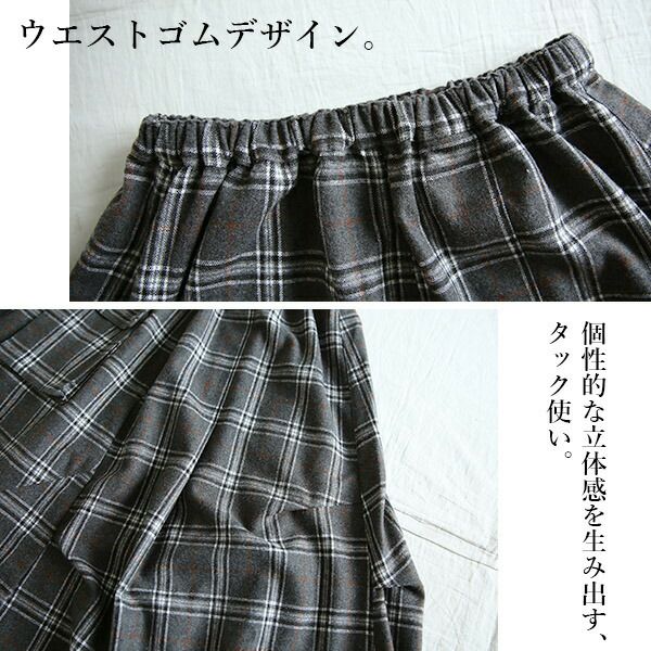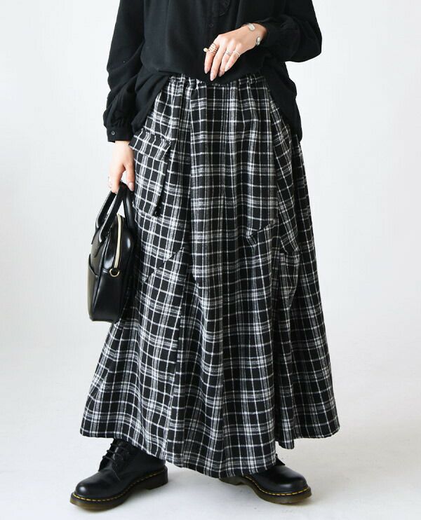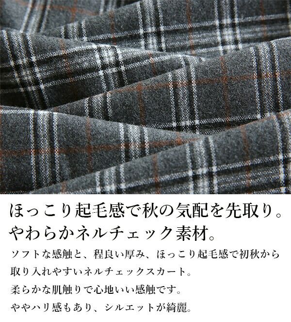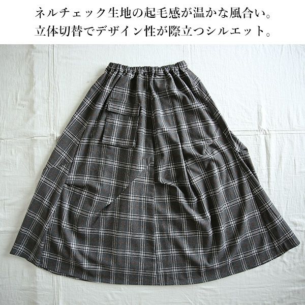 立体的なシルエットとロング丈で人と差がつく!ネルチェック素材のお洒落スカート。