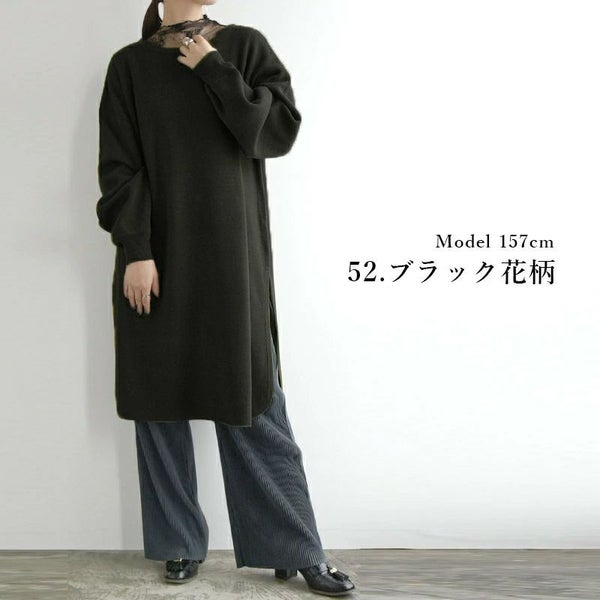それだけでおしゃれなこなれた風合いをプラス。 重たく見えるニットチュニックも首元に透け感のあるシアーレースをプラスすることで 抜け感と軽さを足してくれる。