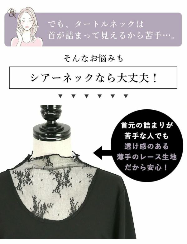 発熱素材であったかぽかぽか!首元のシワを隠せてお洒落に見せる選べるシアーデザイン♪