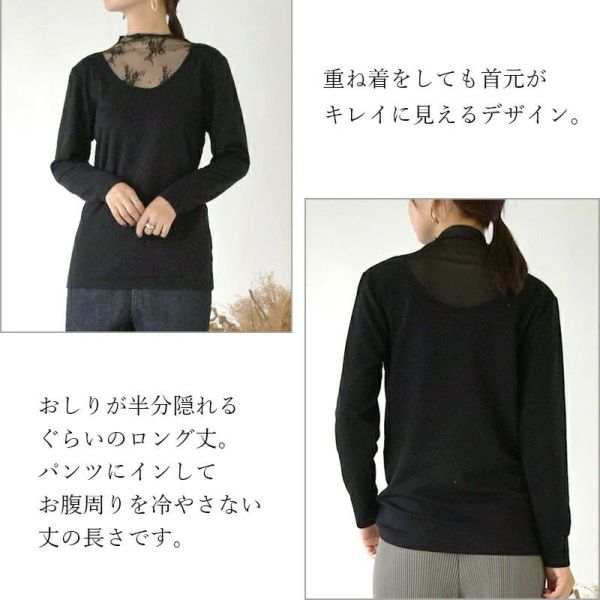首元の年齢隠しに最適なシアーネック以外にも保湿性や保温性、さらには冬の時期に嬉しい 吸汗速乾素材で暖房で汗をかいたりしても汗冷えしないのが魅力!!