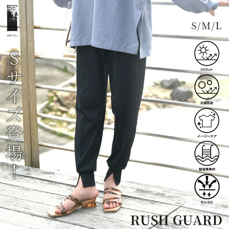 ラッシュガード レディース UVカット 日焼け防止 吸水速乾 抗菌防臭 水着 ビキニ 水陸両用 海 川 プール 夏 BBQ キャンプ 水遊び GW 夏休み お盆 ママ 着痩せ デイリーユース 体型カバー ボトムス パンツ ジョガーパンツ スリット 伸縮性 ストレッチ 動きやすい ウエストゴム 楽ちん 涼感 お洒落 デイリー 日常 移動 普段着 ブラック 黒 andit_ and it_ andit ANDIT_ ANDIT あんどいっと アンドイット SS 新作 NEW カジュアル ナチュラル きれいめ 大人可愛い 大人女子 お洒落 トレンド シンプル ニュアンス M L Mサイズ Lサイズ M~L M-L ゆったり 楽ちん ラフ 体型カバー ぽっちゃり プチプラ ファッション レディースファッション ママ服 ママコーデ 20 30 40 50 20代 30代 40代 50代