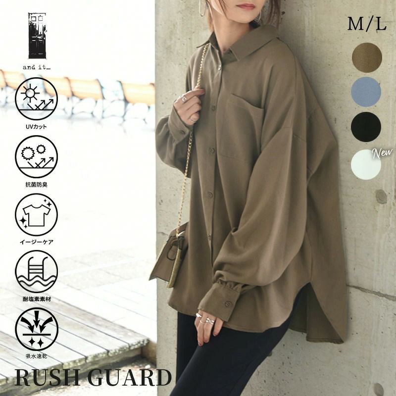 - デイリーラッシュガード ボーイフレンドシャツ M L 【メール便対応可】