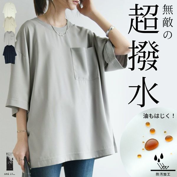 トップス カットソー レディース メンズ ユニセックス 男女兼用 春夏 半袖 防汚加工 撥水 撥油 効果 汚れにくい シミになりにくい 落ちやすい 食べこぼし 家事 雨の日 レジャー 釣り キャンプ Tシャツ ペア カップル 夫婦 ワイド オーバーサイズ お尻が隠れる ゆったり 体型カバー シンプル 無地 ポケット オフホワイト ベージュ グレー ネイビー 白 紺 M L LL and it_ andit ANDIT_ ANDIT あんどいっと アンドイット SS 新作 NEW カジュアル ナチュラル きれいめ 大人可愛い 大人女子 お洒落 トレンド シンプル ニュアンス ゆったり 楽ちん ラフ ぽっちゃり プチプラ ファッション レディースファッション ママ服 20 30 40 50 20代 30代 40代 50代