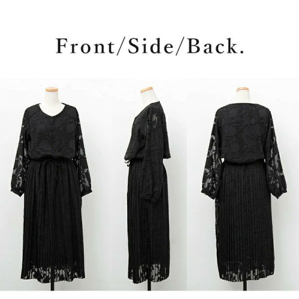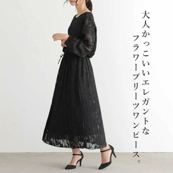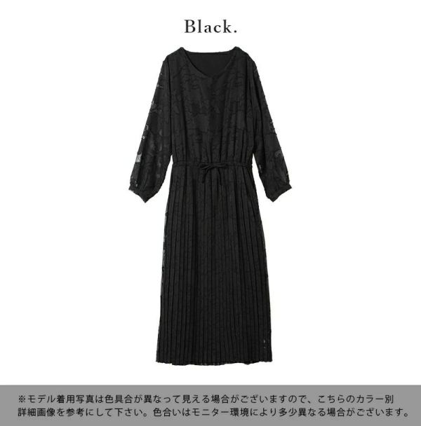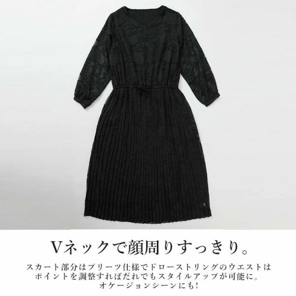フォーマル オケージョン レディース ワンピース 長袖 長そで Vネック 襟なし 襟無し シフォン 透け感 透明感 花柄 レース フラワーレース プリーツ プリーツスカート 華やか ウエストリボン ウエストマーク ゆったり ワイド ワイドシルエット 大きめサイズ 大きめ ゆったり ブラック 黒 F Fサイズ フリー フリーサイズ 着回し 学校行事 学校 参観日 入園 入学 卒業 卒園 入園式 入学式 卒業式 卒園式 好印象 七五三 お宮参り 保護者会 発表会 ハレの日 ママ 母 母親 服装 服 成人式 結婚式 披露宴 謝恩会 二次会 ママスーツ スーツ フォーマルスーツ セレモニースーツ パーティー パーティ パーティードレス カジュアル ナチュラル おしゃれ オシャレ きれいめ キレイめ 上品 シンプル 服 新作 新着 スタイル ワントーンコーデ 30代 40代 50代 春 春服 春物 春夏 春夏服 春夏物 春夏服 夏 夏服 夏物 秋 秋服 秋物服 秋冬 秋冬服 秋冬物 冬 冬服 冬物 冬服 冬服 新作 新着 オールシーズン