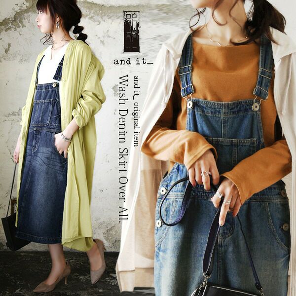 ウォッシュデニムスカートオーバーオール 【メール便対応不可】
