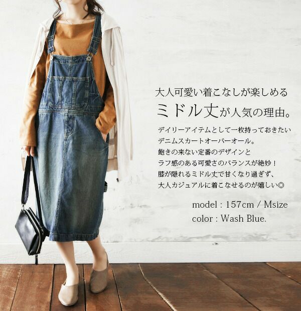 オーバーオール スカート レディース サロペット ミドル丈 デニム
