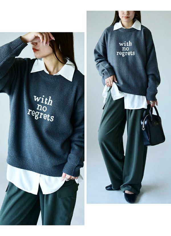 大人のお洒落ロゴニット。レイヤードスタイルも楽しめる着回しアイテム♪