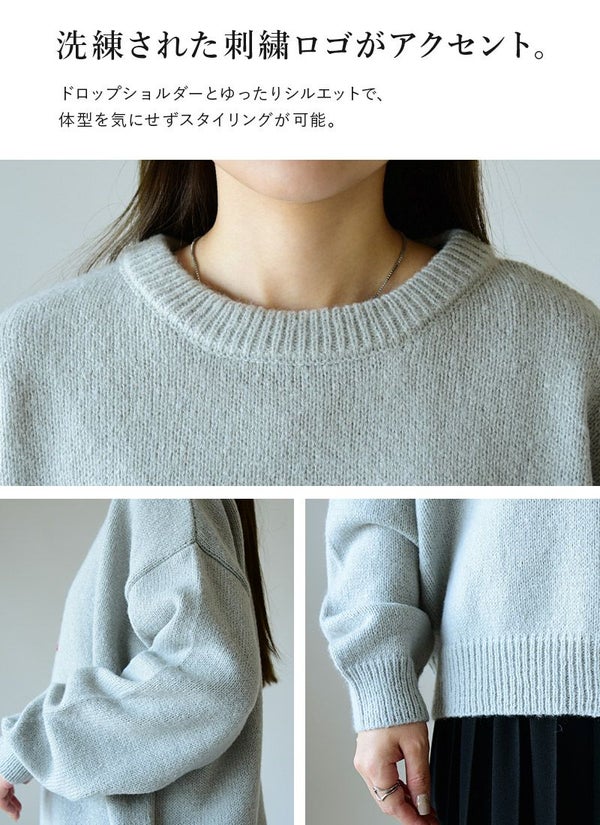 ニット レディース ロゴ 刺繍 プルオーバー トップス 長袖 ロゴニット 大人 シンプル お洒落 トレンド 着回し 重ね着 レイヤード ドロップショルダー ゆったり 楽ちん ラフ ワイド オフホワイト 杢グレー チャコールグレー 白 秋 冬 24aw AW, M-L M L エム エル andit_ and it_ andit ANDIT_ ANDIT あんどいっと アンドイット 新作 NEW カジュアル ナチュラル きれいめ 大人可愛い 大人女子 お洒落 トレンド シンプル ニュアンス プチプラ ファッション レディースファッション 20 30 40 50 20代 30代 40代 50代