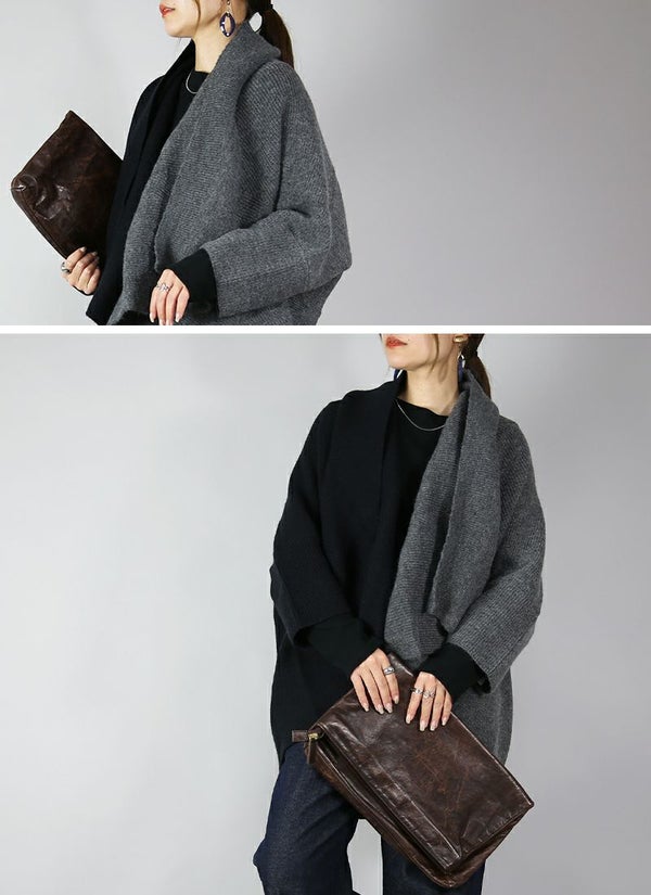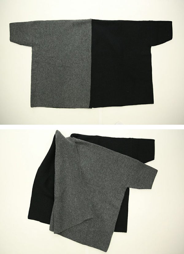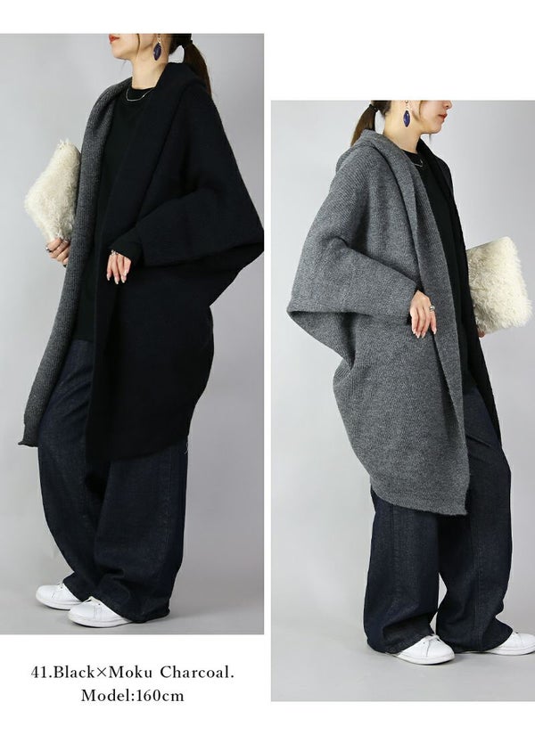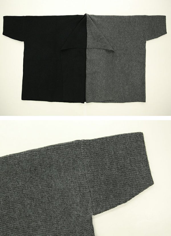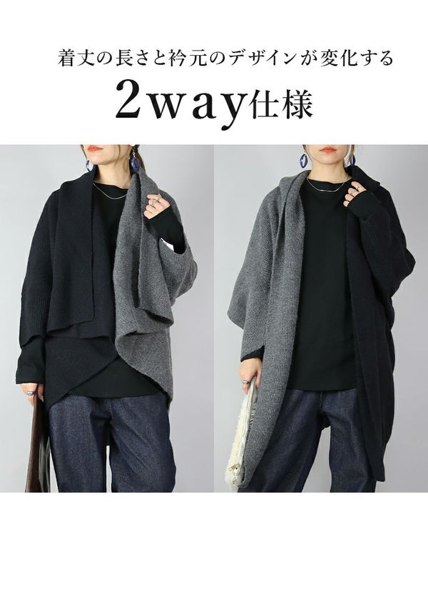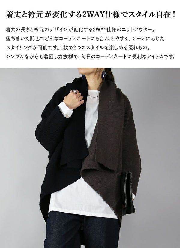1枚で2つの雰囲気を楽しめる!バイカラーが目を惹くお洒落ニットガウン☆