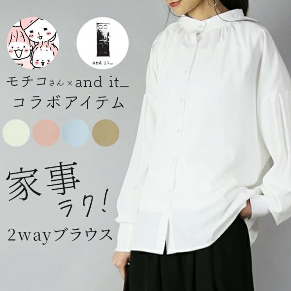 モチコさん もちこさん mochico モチコ もちこ コラボ コラボアイテム トップス ブラウス 長袖 前後 2way 羽織り はおり 家事 ラク 楽々 タック お洒落ブラウス おしゃれブラウス オシャレブラウス 腕まくり可能 袖まくり可能 重ね着 かさね着 レイヤード 洗濯機OK 洗濯機可 洗濯機で洗える お手入れ楽ちん シワになりにくい しわになりにくい ポケット付き ポケット スタンドカラー 甘めブラウス スッキリシャツ ボリューム袖 ボリュームスリーブ ぽわん袖 オフホワイト モカベージュ サックス ピンク 白 水色 ママコーデ ママ服 動きやすい お出掛け フォーマル オケージョン 七五三 卒業式 入学式 参観 面談 学校行事 仕事 オフィス 新作 NEW ニュー カジュアル かじゅある ナチュラル なちゅらる 女性 綺麗 綺麗目 綺麗め きれいめ キレイメ キレイめ きれい キレイ 可愛い かわいい カワイイ カッコいい かっこいい 格好良い カッコイイ 大人 オトナ おとな オトナカワイイ おとなかわいい 大人可愛い 大人女子 おとなじょし オトナジョシ お洒落 おしゃれ オシャレ トレンド 旬 とれんど 流行 こなれ感 こなれ 高見え 上質 上品 シンプル ニュアンス ラクチン らくちん 楽ちん 楽 動きやすい ゆったり ゆる ゆったりサイズ ゆるカジ ゆるい ゆるファッション 体型カバー プラスサイズ 大きいサイズ ビッグ ビック big ビックシルエット ビッグシルエット ビックサイズ ビッグサイズ オーバーサイズ オーバー フリーサイズ フリー S M L LL 2L XL 3L XXL LLL 着痩せ 着回し 華奢見せ 華奢見え ベーシック プチプラ ファッション レディースファッション レディファ カジュアルコーデ 大人コーデ オトナコーデ 大人カジュアルコーデ きれいめコーデ きれいめカジュアルコーデ オフィスカジュアルコーデ オフィスカジュアル オフィス テレワーク リモートワーク リモート オンライン飲み会 飲み会 打ち上げ ご飯会 ランチ おうち時間 お家時間 デート お出かけ フェス リゾート ビーチ 海 旅行 飛行機 パーティー パーティ 韓国ファッション 韓国コーデ 韓国風 韓国 母の日 母のひ プレゼント ギフト 贈り物 クリスマス 誕生日 春 夏 秋 冬 春夏 秋冬 andit_ and it_ andit ANDIT_ ANDIT あんどいっと アンドイット 20 30 40 50 60 20代 30代 40代 50代 60代
