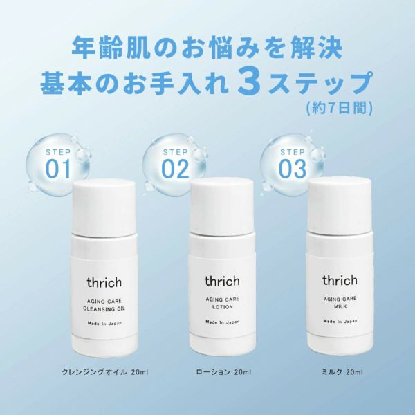 スリッチ thrich オリジナル スキンケア トライアルセット お試しセット 1週間 7日間 お手入れ クレンジング 化粧落とし 化粧水 乳液 ジェル オイル クレンジングジェル クレンジングオイル ローション ミルク デイリー エイジング シリーズ 保湿 乾燥肌 脂性肌 混合肌 日本製 メイドインジャパン 低刺激 浸透 毛穴 黒ずみ くすみ クリア ビタミンC ビタミンA レチノール ビタミンE ヒアルロン酸 andit_ and it_ andit ANDIT_ ANDIT あんどいっと アンドイット 春 夏 秋 冬 春夏 秋冬 スプリング サマー オータム ウインター 20 30 40 50 20代 30代 40代 50代