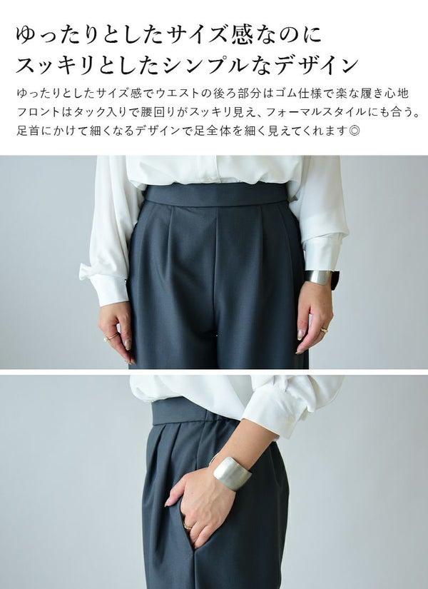 ボトムス パンツ レディース テーパード ゆったり ボトムス ゆったり 楽ちん ラフ 上品 きれいめ 綺麗め シンプル 無地 仕事 オフィス 着回し デイリー タック タックパンツ ウエストゴム 春 夏 秋 冬 24aw SS, AW, M andit_ and it_ andit ANDIT_ ANDIT あんどいっと アンドイット 新作 NEW カジュアル ナチュラル きれいめ 大人可愛い 大人女子 お洒落 トレンド シンプル ニュアンス プチプラ ファッション レディースファッション 20 30 40 50 20代 30代 40代 50代