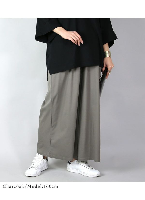 脚のラインを拾わないゆったり大人ワイドシルエット。ひんやり心地良く快適な穿き心地に◎