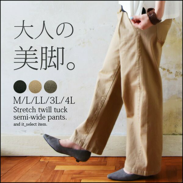 4. 【受注発注】ストレッチツイルタックセミワイドパンツ 【メール便対応不可】