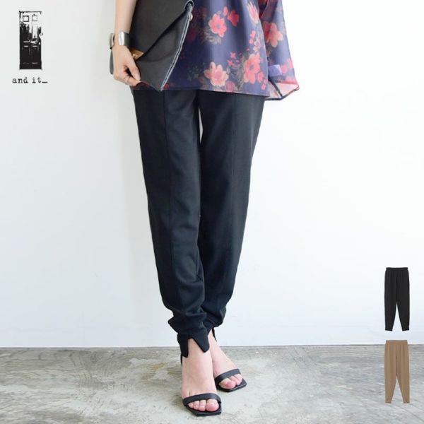 パンツ レディース 春夏 梨地 スリット ジョガーパンツ ボトムス きれいめ 綺麗め センターライン シンプル 大人可愛い こなれ感 前スリット ウエストゴム 楽ちん ゆったり 伸縮性 ストレッチ 動きやすい 大きいサイズ オフィス オフィスカジュアル andit_ and it_ andit ANDIT_ ANDIT あんどいっと アンドイット SS 新作 NEW カジュアル ナチュラル きれいめ 大人可愛い 大人女子 お洒落 トレンド シンプル ニュアンス M-L LL-3L M L LL 3L ゆったり 楽ちん ラフ 体型カバー ぽっちゃり プチプラ ファッション レディースファッション ママ服 20 30 40 50 20代 30代 40代 50代