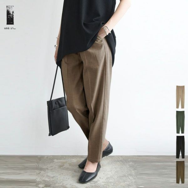 パンツ レディース 春 夏 シワになりにくい 軽量 テーパード ボトムス タック タックパンツ 大人 きれいめ 上品 涼感 涼しい シンプル ウエストゴム バックゴム オフィス 会社 通勤 オフィスカジュアル 杢ベージュ 杢ブラウン 杢カーキ ブラック 黒 晩夏 andit_ and it_ andit ANDIT_ ANDIT あんどいっと アンドイット SS 新作 NEW カジュアル ナチュラル きれいめ 大人可愛い 大人女子 お洒落 トレンド シンプル ニュアンス M Mサイズ L Lサイズ 春服 夏服 ゆったり 楽ちん ラフ 体型カバー ぽっちゃり プチプラ ファッション レディースファッション ママ服 20 30 40 50 20代 30代 40代 50代