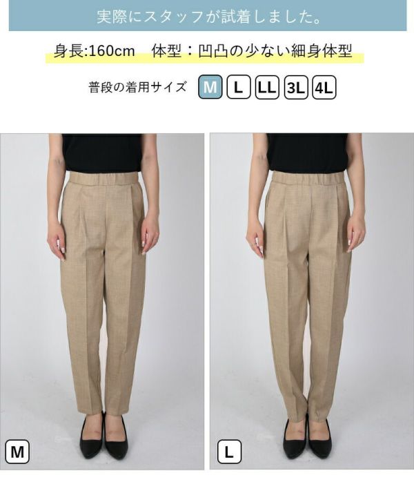 シワになりにくい軽量テーパードパンツ M L 【メール便対応可】
