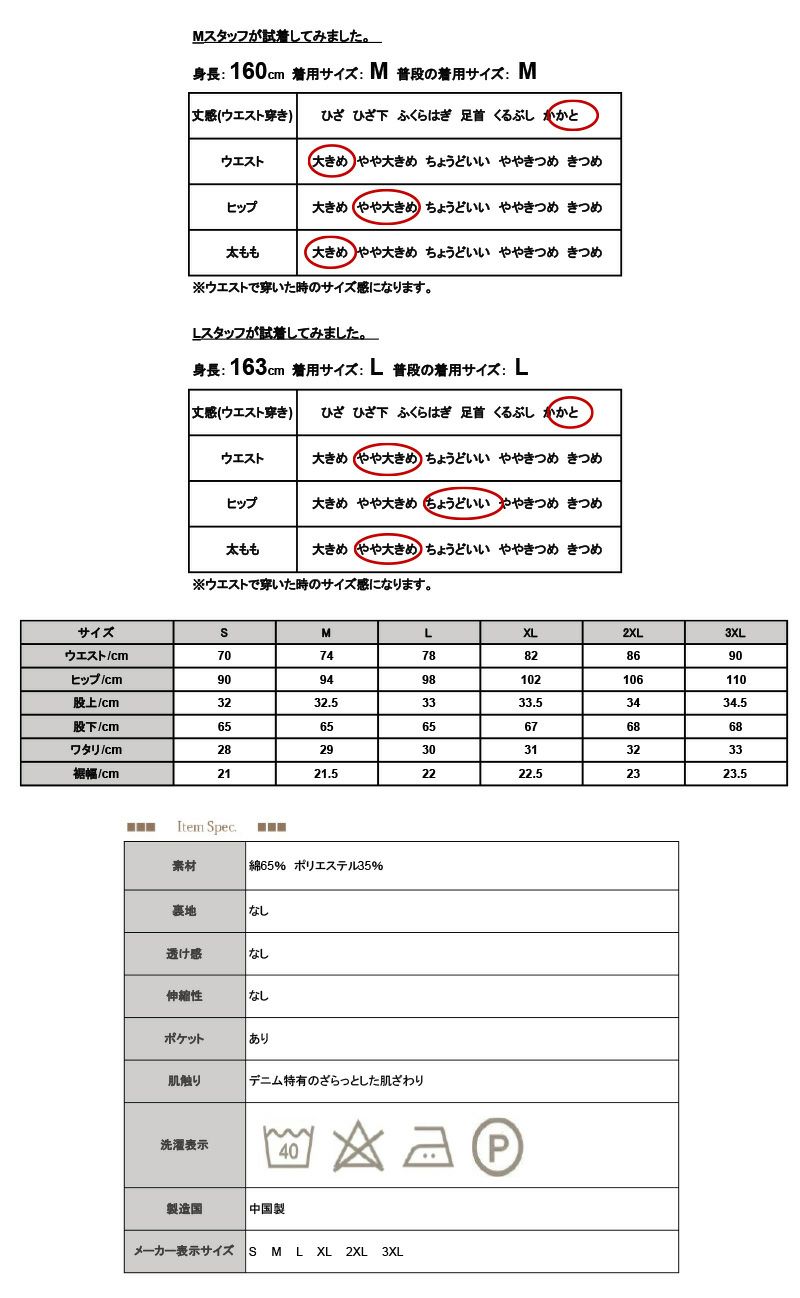 お財布にやさしいセミワイドデニムパンツ S M L XL 2XL 3XL 【メール便対応不可】
