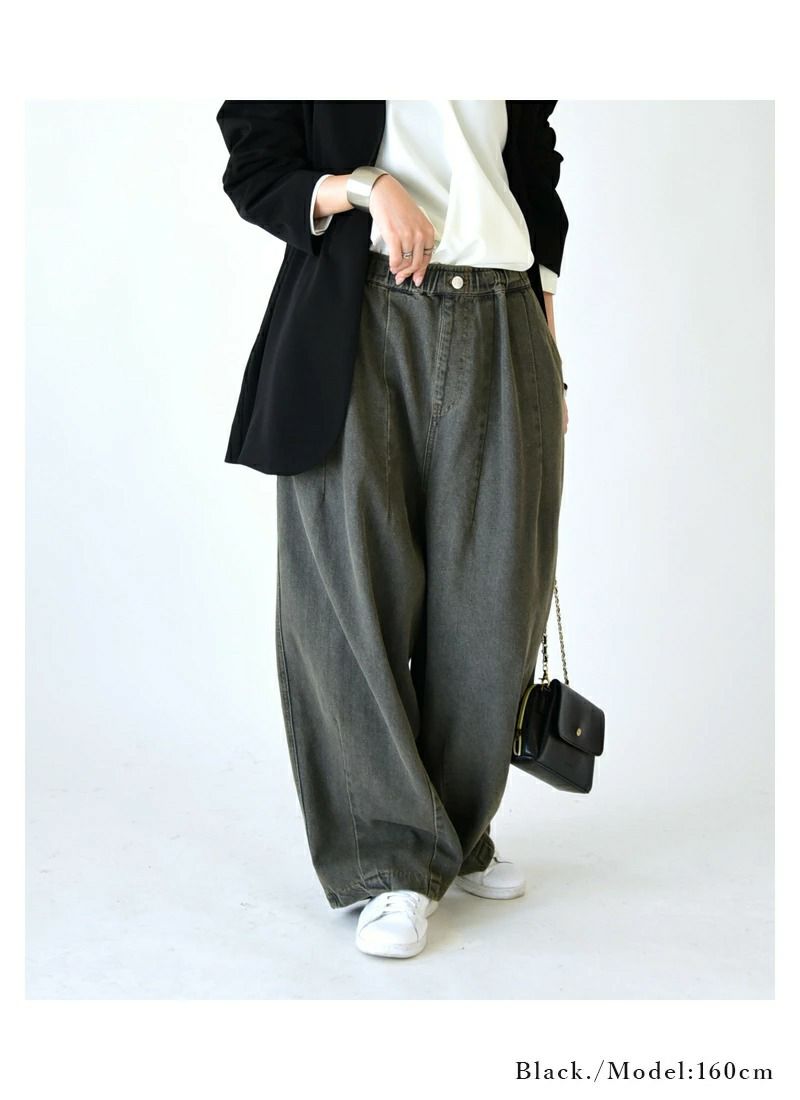 - 裾タックバルーンイージーデニムパンツ F 【メール便対応不可】