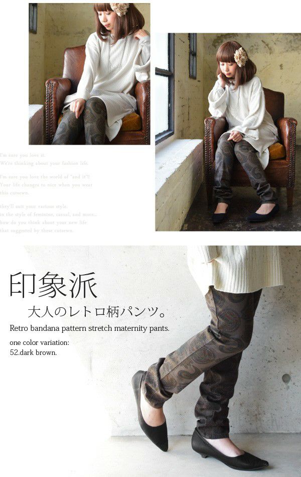 他の画像を見る おしゃれを楽しむプレママさんにおすすめ!お腹をすっぽり包み込むウエストリブでとっても楽な穿き心地♪たっぷりサイズ調節が出来て時期問わずお使い頂けます◎ レトロバンダナ柄ストレッチマタニティパンツ 【メール便対応不可】 販売価格 ¥ 3,499 税込 カートに入れる お気に入りに登録する