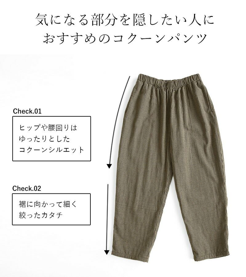 他の画像を見る Wガーゼの素材で肌触り柔らか♪ゆったり楽ちんコクーンシルエット! Wガーゼコクーンパンツ M-L 【メール便対応不可】 販売価格 ¥ 5,199 税込 カートに入れる お気に入りに登録する