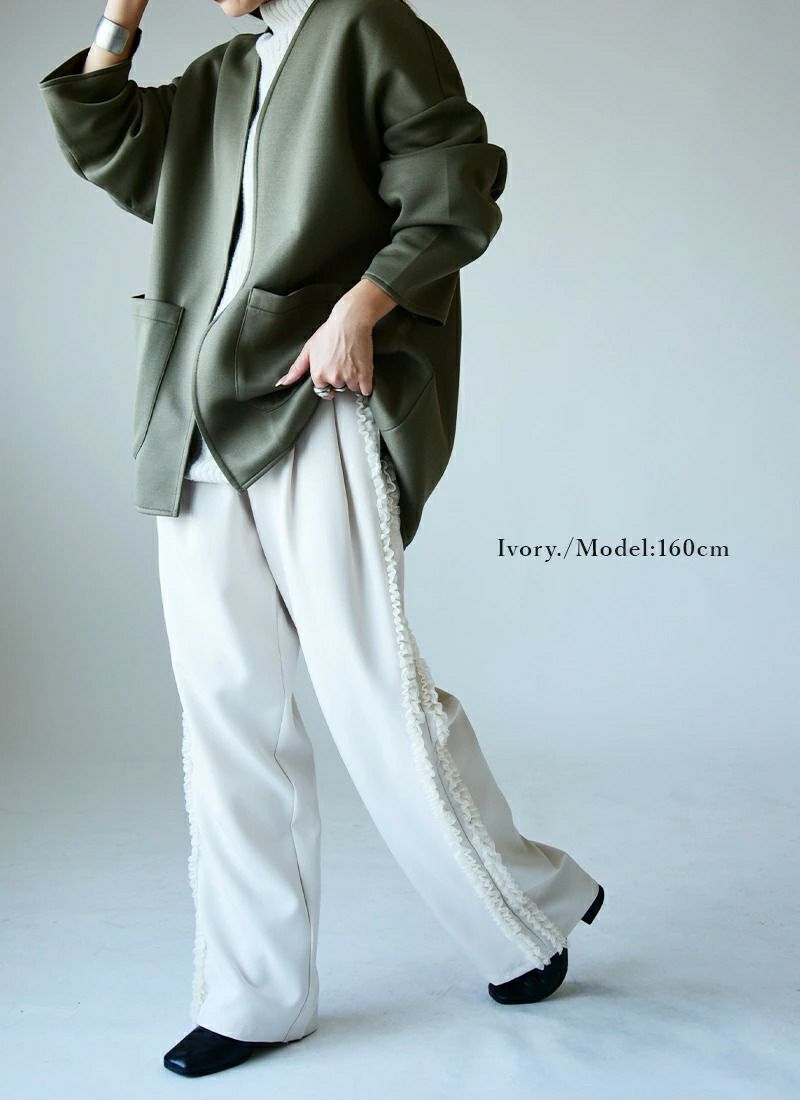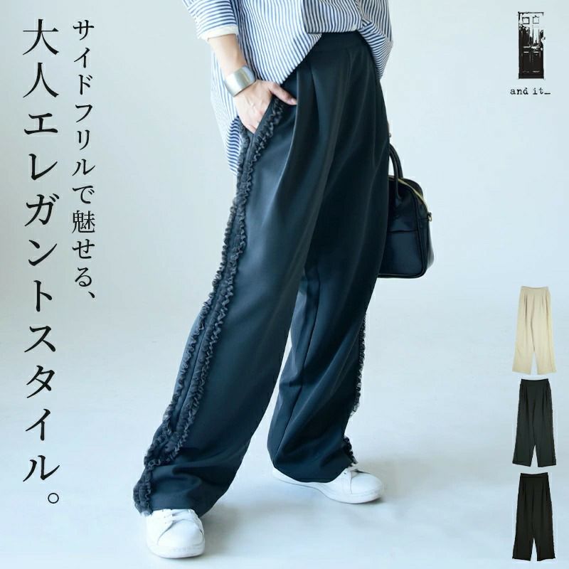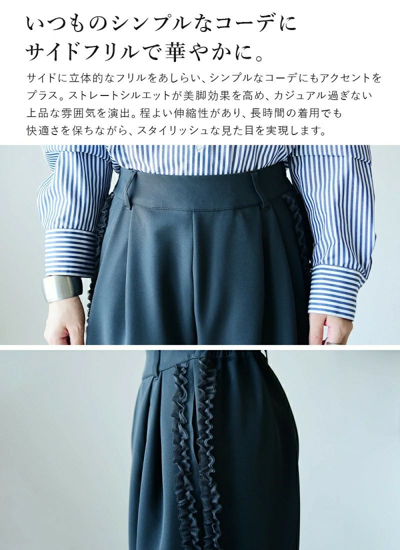 他の画像を見る 甘くなりすぎない大人のフリルデザイン。さりげなく上品さを取り入れてトレンドコーデに♪ サイドフリルパンツ M 【メール便対応不可】 販売価格 ¥ 5,799 税込 カートに入れる お気に入りに登録する