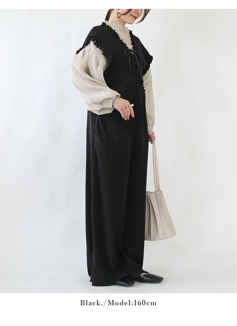 他の画像を見る 自分丈にセルフカットできる、ラクしてキレイなプリーツオールインワン。レースアップデザインで、1枚でこなれ感のある大人コーデが完成。 レースアッププリーツオールインワン F 【メール便対応不可】 新商品 販売価格 ¥ 4,999 税込 カートに入れる お気に入りに登録する