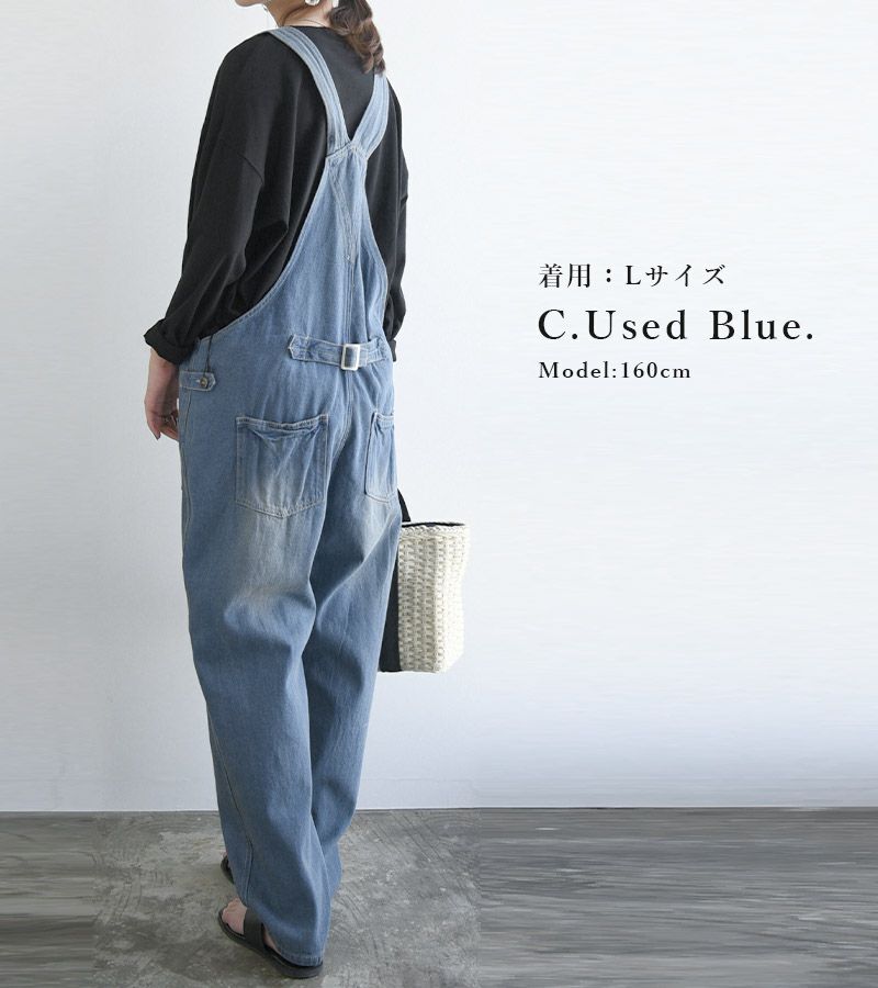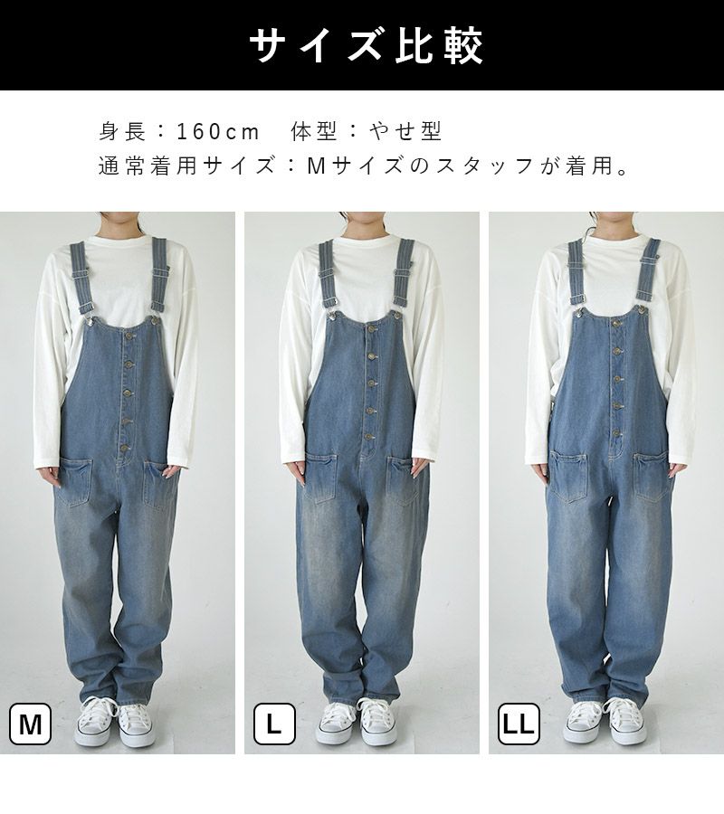 フロントボタンデニムサロペット M L LL 【メール便対応不可】