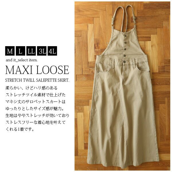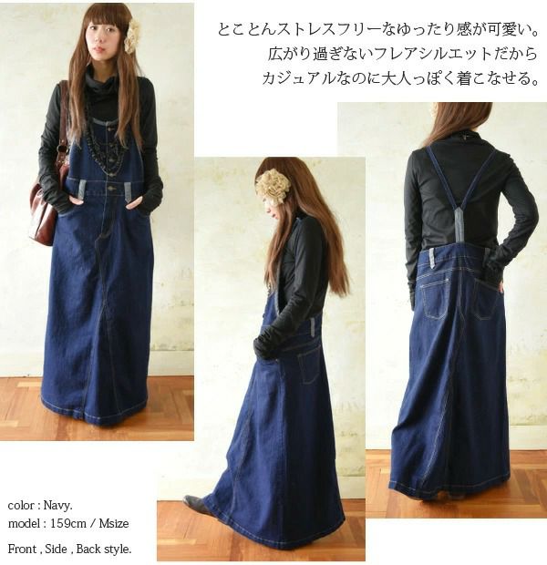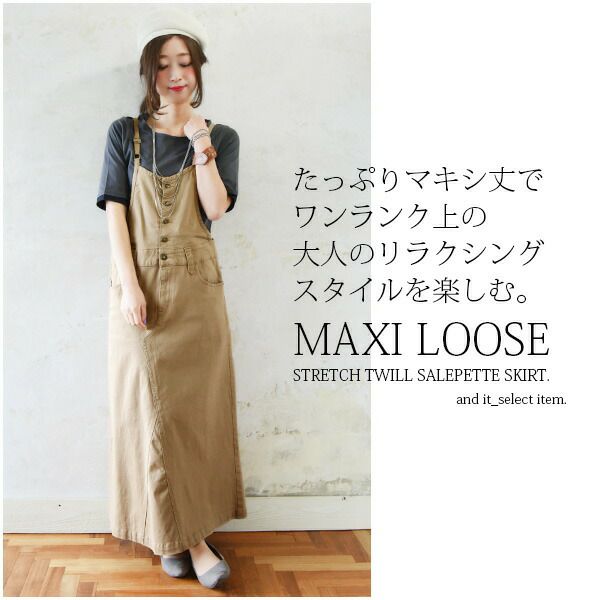 ゆるっとカジュアルだけどちょっと大人っぽいシルエット♪ストラップで調整もしやすいマキシ丈のサロペットです。 マキシ丈ゆるデニムサロペットスカート 【メール便対応不可】