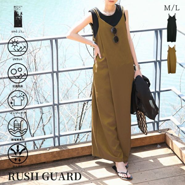 ラッシュガード 水着 レディース 春 夏 UVカット 紫外線防止 抗菌防臭 匂いにくい イージーケア お手入れ簡単 ウォッシャブル 耐塩素 色褪せしにくい 吸水速乾 乾きやすい 高機能 海 川 プール レジャー 公園 GW 夏休み お盆 お出かけ 旅行 リゾート 帰省 普段使い デイリー使い デイリー デイリーユース 着回し ママ ママ服 サロペット サロペ キャミ ボトムス パンツ ワイドパンツ ヒップカバー 着痩せ 体型カバー リネンライク 涼感 涼しい M L Mサイズ Lサイズ andit_ and it_ andit ANDIT_ ANDIT あんどいっと アンドイット SS 新作 NEW カジュアル ナチュラル きれいめ 大人可愛い 大人女子 お洒落 トレンド シンプル ニュアンス ゆったり 楽ちん ラフ ぽっちゃり プチプラ ファッション レディースファッション ママ服 20 30 40 50 20代 30代 40代 50代