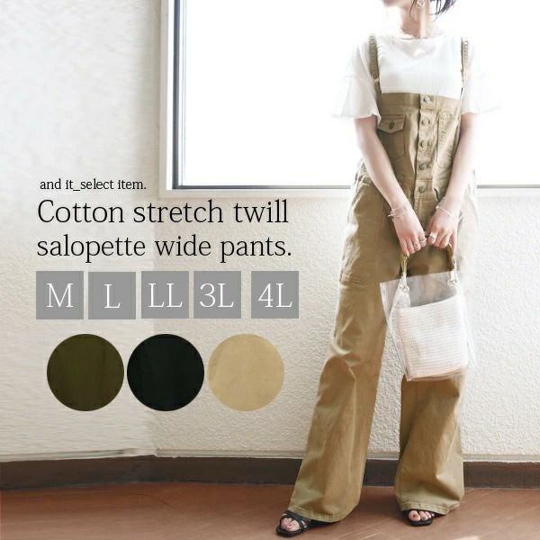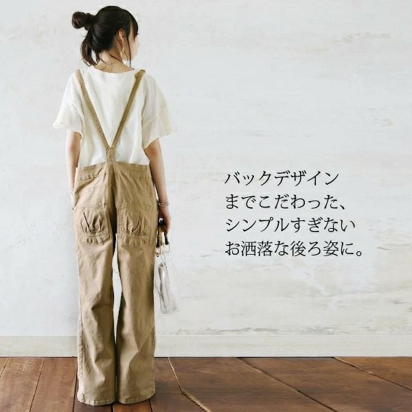 【受注発注】コットンストレッチツイルサロペットワイドパンツ 【メール便対応不可】