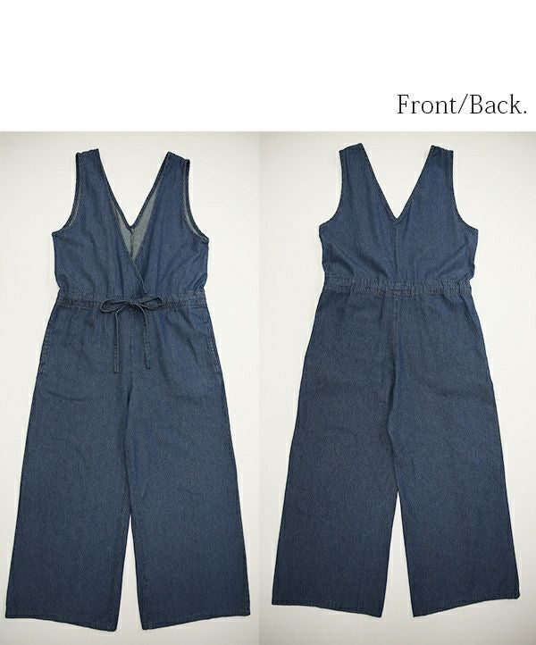 【受注発注】サロペット レディース デニム ウエストリボンデニムサロペット 【メール便対応不可】